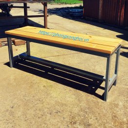 Ghế chân sắt mặt gỗ thông dài 1m ngồi xông hơi 02 người