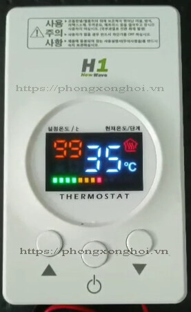 Có 2 ô báo nhiệt độ cần đạt đến của máy xông hơi và nhiệt độ hiện tại trong phòng tách biệt. Nhập khẩu Hàn Quốc.Điều khiển nhiệt độ được cho tất cả các dòng máy xông hơi ướt / khô . Tầm nhiệt đến 99oC. Không có chức năng hẹn giờ tắt máy. Là dòng cao cấp nhất, và mới nhất nhập khẩu từ Hàn Quốc