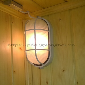 có chụp bao bọc bóng đèn giúp giảm nguy cơ cháy nổ, chạm chậm do nhiệt độ và hơi ẩm cao trong phòng xông hơi. đèn chuyên dụng dùng chiếu sáng trong môi trường ẩm ướt, nhiệt đọ cao