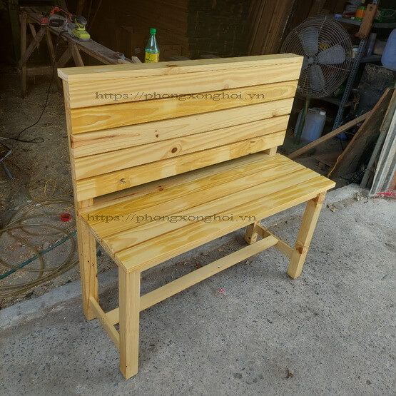 Ghế gỗ thông ngồi xông hơi dài 1m cho 02 người có tựa