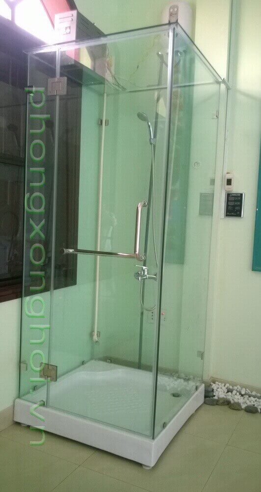 Vách kính cường lực. Dùng khay Composite. Dạng phòng rời có thể thay đổi vị trí được.Phòng có các kích thước theo đế sẵn :900x900x2000mm